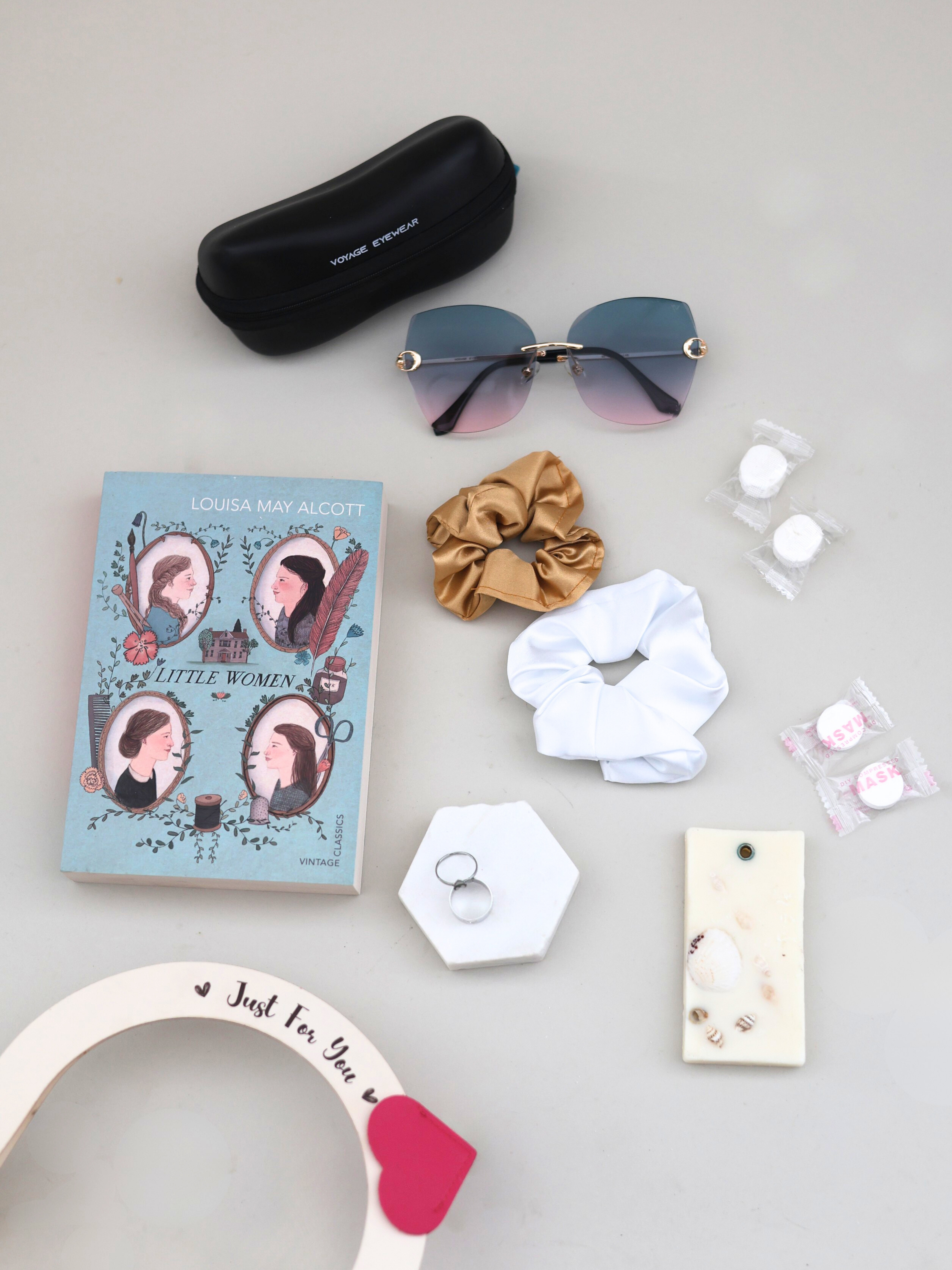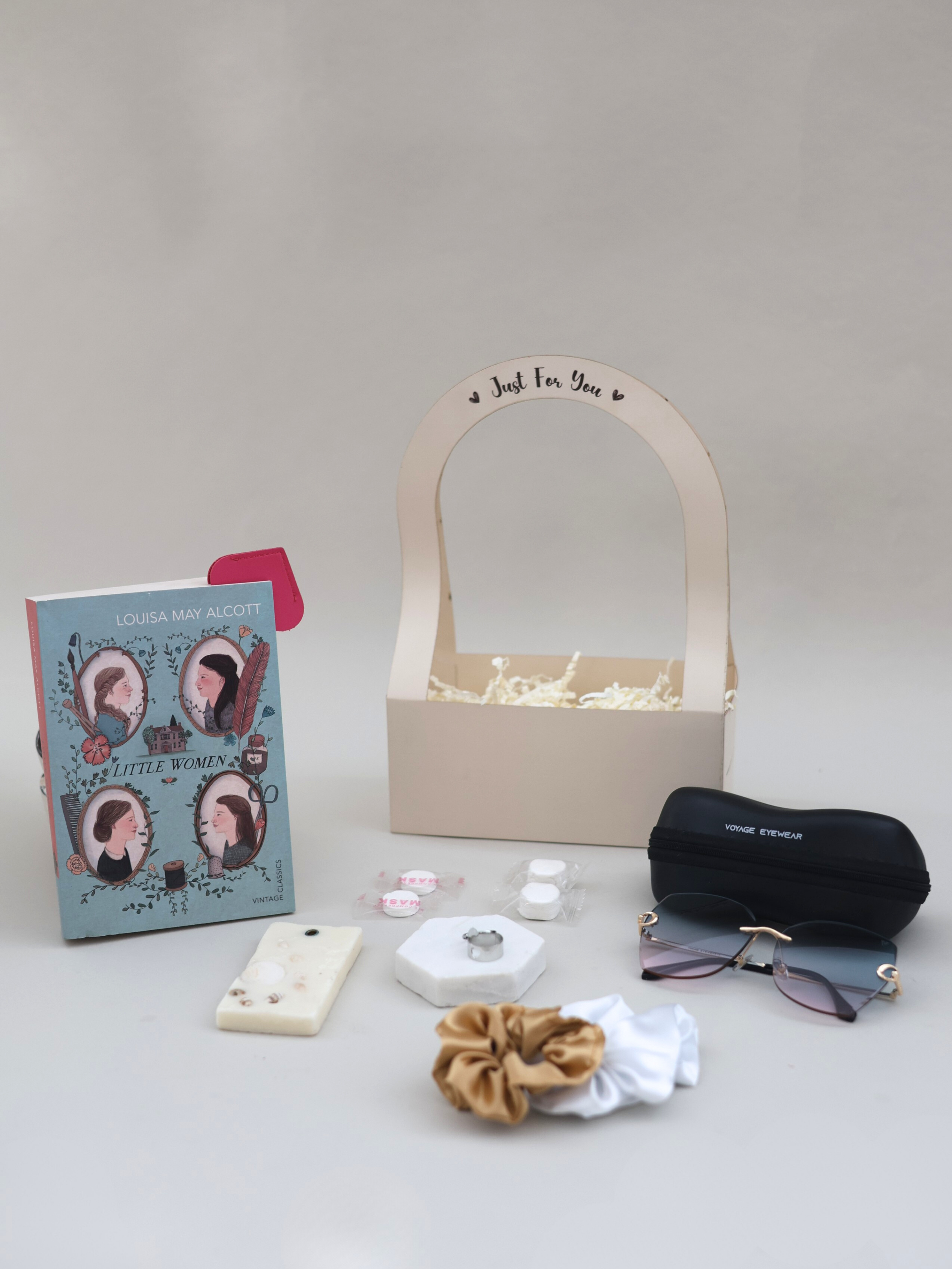 A charming collection crafted to express love and thoughtfulness. This set includes a stunning silver heart couple ring, Pour Your Heart Out book with a cute pink heart bookmark, golden and white scrunchies, a soothing shell candle tablet, and a DIY face mask capsule- all packed in a “Just For You” paper bag. A perfect gift to make your special one feel truly cherished.