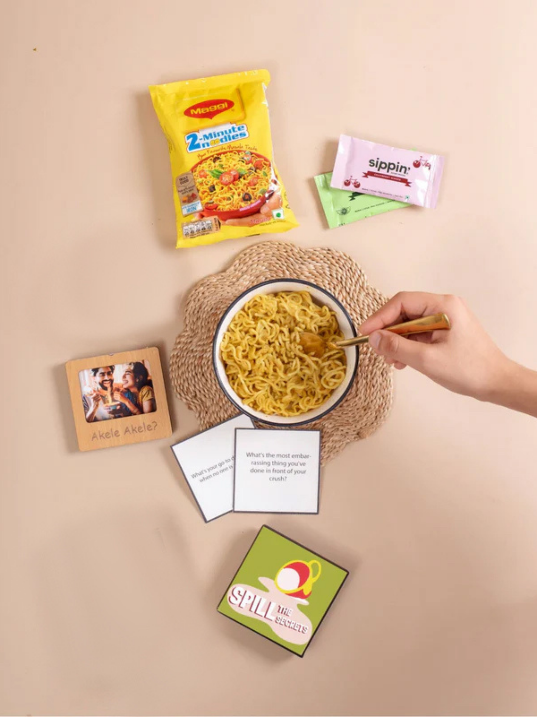 Relive those late-night Maggie sessions and joyful, unforgettable moments filled with silent laughter, spilled secrets, and much more, all wrapped in this hamper full of nostalgia and love!