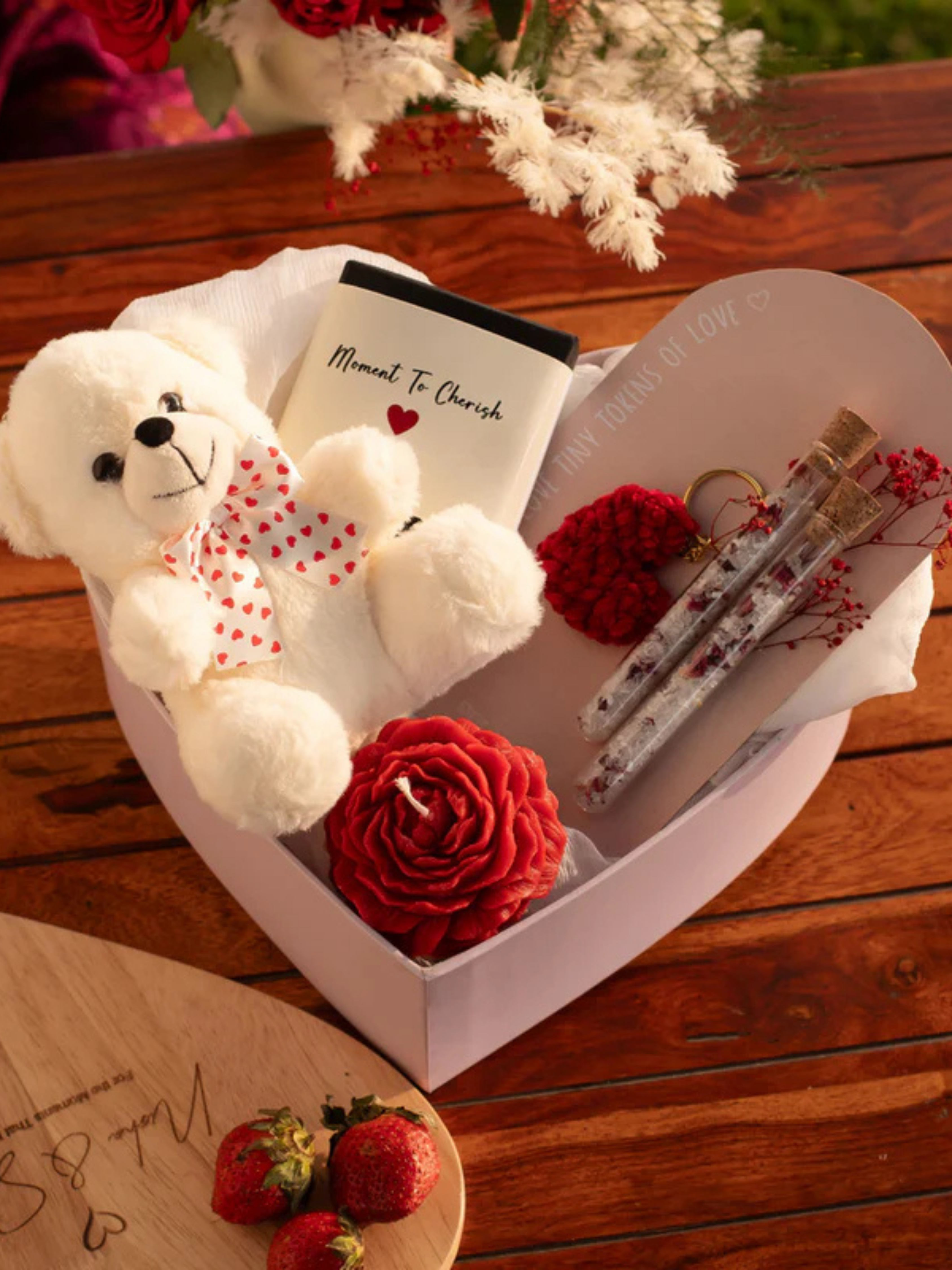 Celebrate them as sweet and unforgettable as your love, with this thoughtfully curated box that captures the essence of romance and warmth. A little something for their heart, with memories to treasure forever.