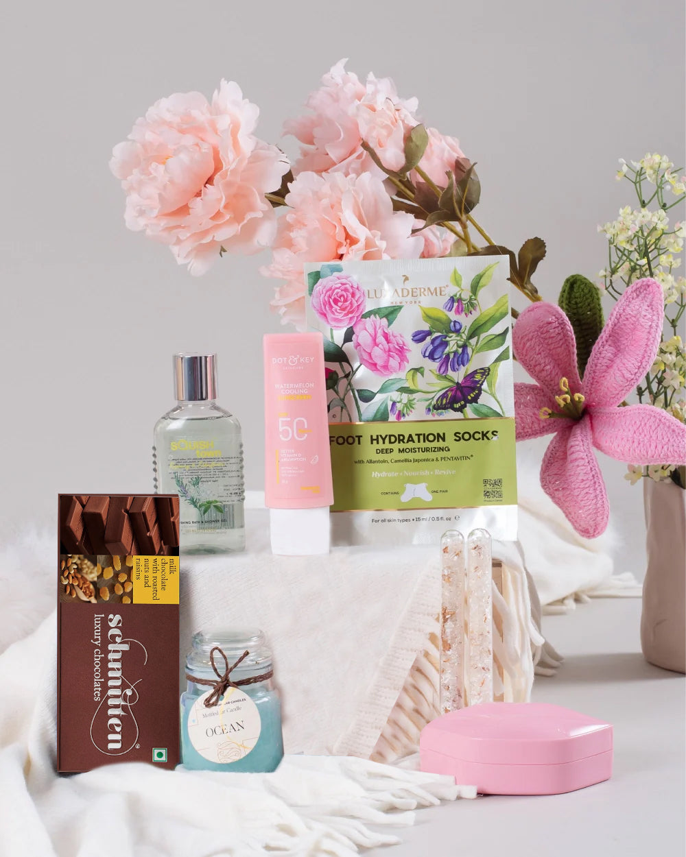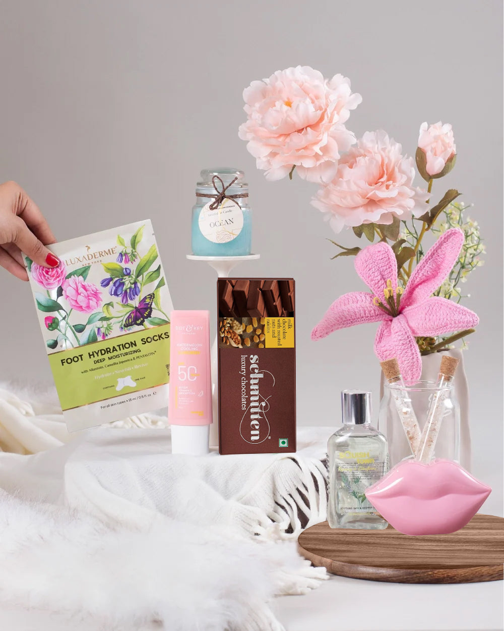 Experience the luxury of self-care with our Parcel of Pampers, a curated blend of indulgent treats. Elevate your senses with calming body wash, soothing lotion, aromatic candles, and delightful chocolates. Perfect for rejuvenation.